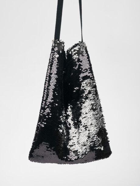 Sequin mini bag with a cotton herringbone strap Size 22 x 28 cm, strap 97 cm